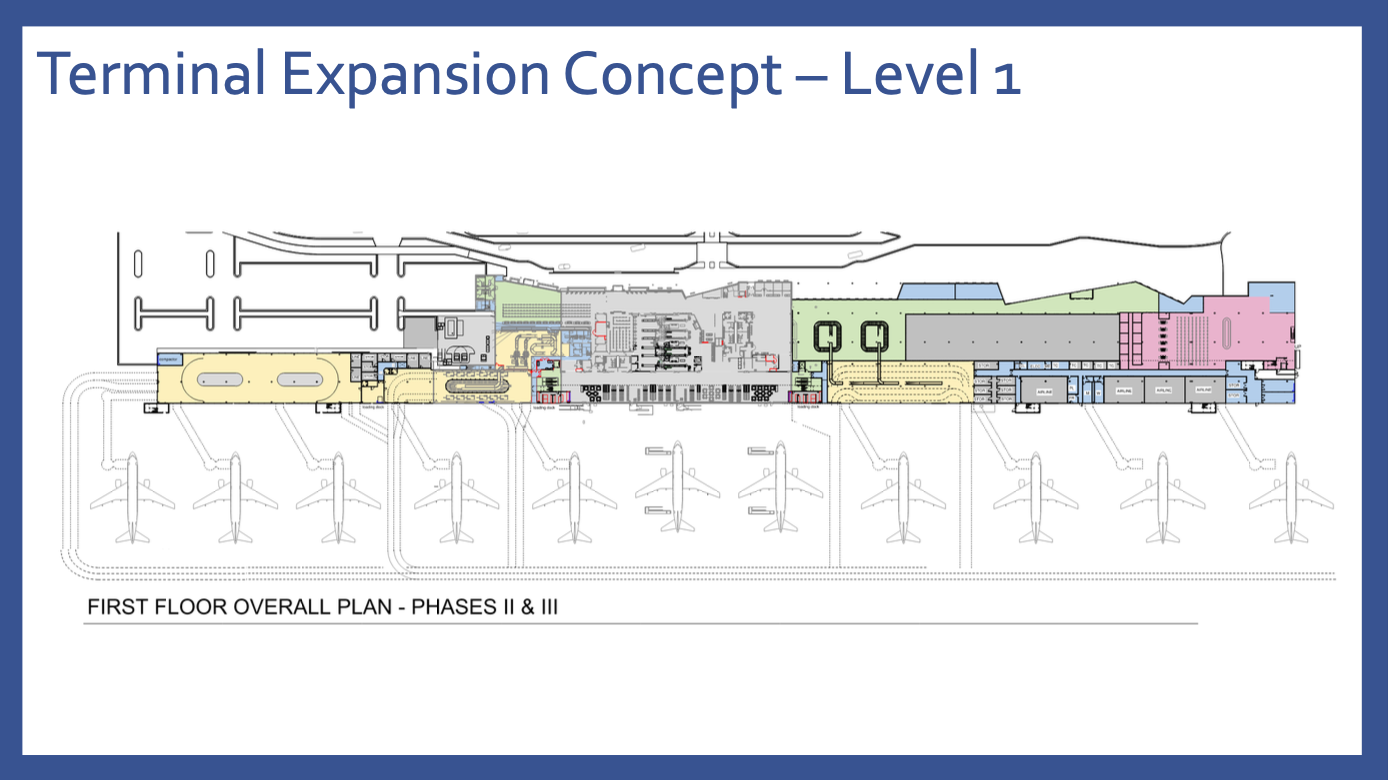 The airport will expand from 5 gates to 10 total gates, including 8 jet bridge systems.