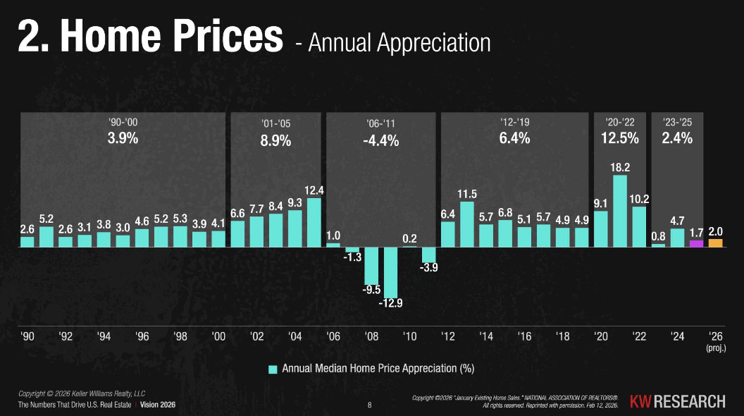 The projected appreciation rate for 2026 is around 2% — right in line with normal, sustainable growth.