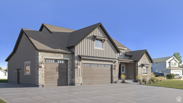 Nestled in a picturesque neighborhood, this exquisitely designed 4-bedroom, 3.5-bathroom home is a showcase of thoughtful craftsmanship and refined living. With 5,572 square feet of beautifully curated space, every corner of this home invites warmth, sophistication, and effortless functionality. Step inside through the striking custom entry door and be greeted by an open-concept layout that balances grand scale with cozy intimacy. The heart of the home is the stunning custom kitchen, where high-end cabinetry, impeccable trim work, and seamless built-ins around the fireplace create a space that is as beautiful as it is practical. Whether you're hosting lively gatherings or enjoying a quiet evening in, the spacious living area sets the perfect scene. The primary suite is a retreat unto itself-generous in size, elegantly designed, and filled with natural light. A large laundry and craft room adds convenience, while the expansive unfinished basement, complete with an outside entrance, offers endless possibilities for additional living space or entertainment. Outside, the beautifully landscaped yard provides plenty of space to relax, entertain, or play. With a west-facing orientation, you'll enjoy shaded summer evenings on the patio while watching the sunset. The addition of an RV pad ensures ample parking and storage for all your adventures. Located just minutes from I-15, Costco, parks, and an array of dining and shopping options, this home offers both tranquility and accessibility. Thoughtfully designed and expertly crafted, this is more than a house-it's the perfect place to call home. Schedule your private showing today and experience the charm and elegance for yourself.